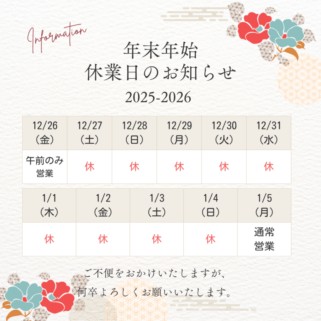 誠に勝手ながら下記の期間を年末年始の休業とさせていただきます。